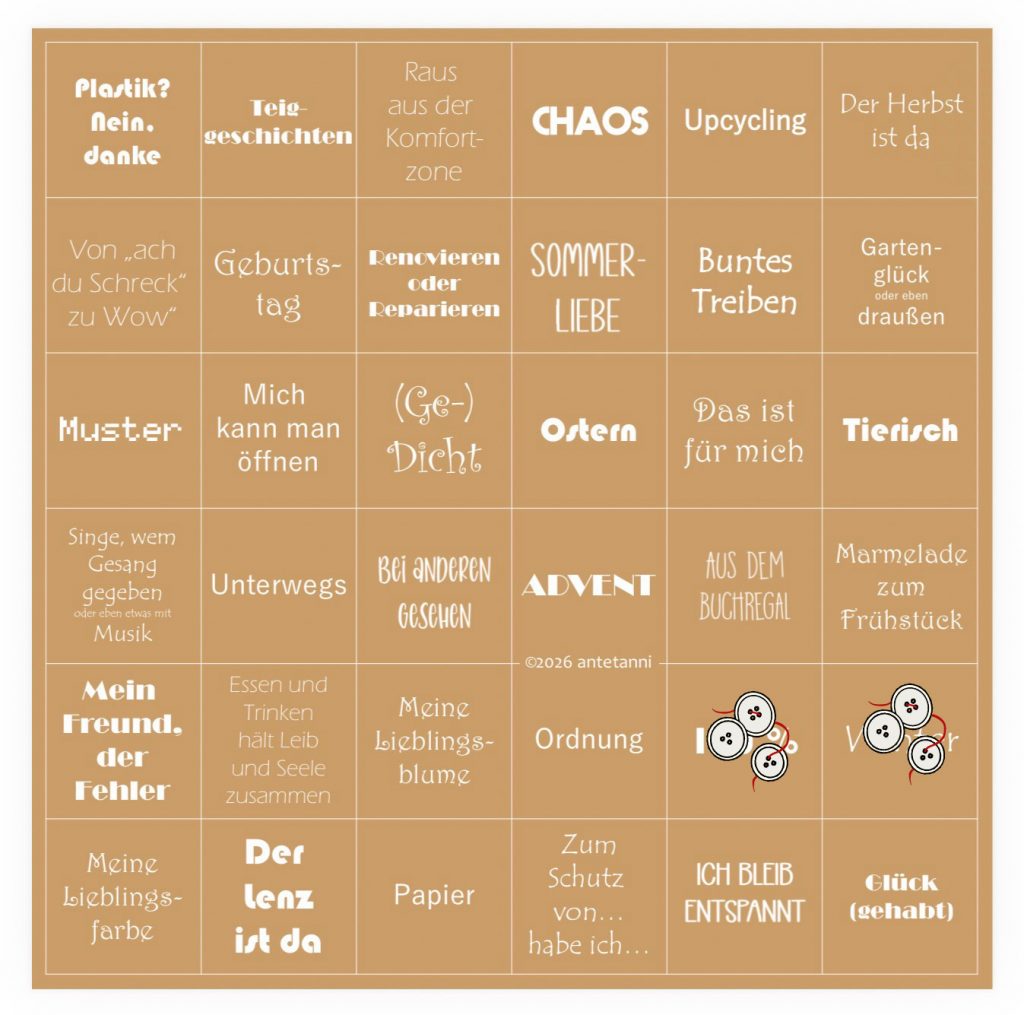 Und für das Bingo von Antetanni reicht der Beitrag auch noch 🙂 Ich streiche das Feld „100%“, da zwei neue selbstgenähte Kleidungsstücke endlich zu 100% fertiggestellt sind. Jippie!